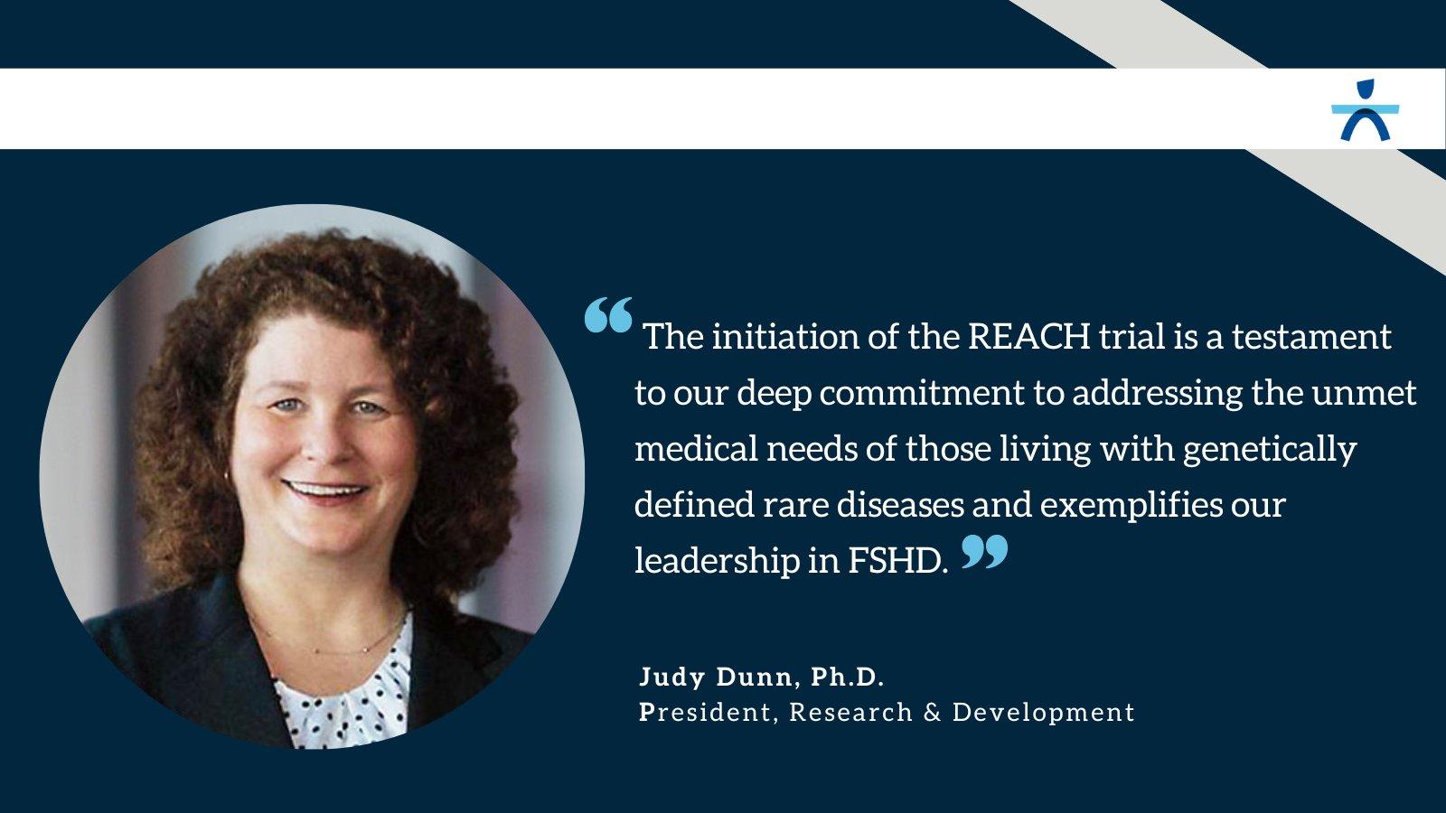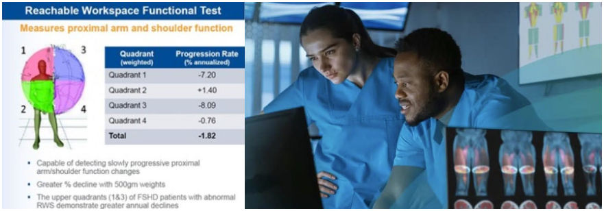 REACH项目研究的主要疗效终点将是可达工作空间(RWS)与基线的绝对变化。RWS是对FSHD患者疾病进展的定量和可靠的功能测量,它与患者在现实环境中的感受和功能密切相关。次要终点包括肌肉脂肪浸润 (MFI),肌肉健康指标、患者整体变化印象 (PGIC) 和上肢神经系统疾病生活质量 (Neuro QoL UE),衡量患者自我报告的健康状况- 相关的生活质量。